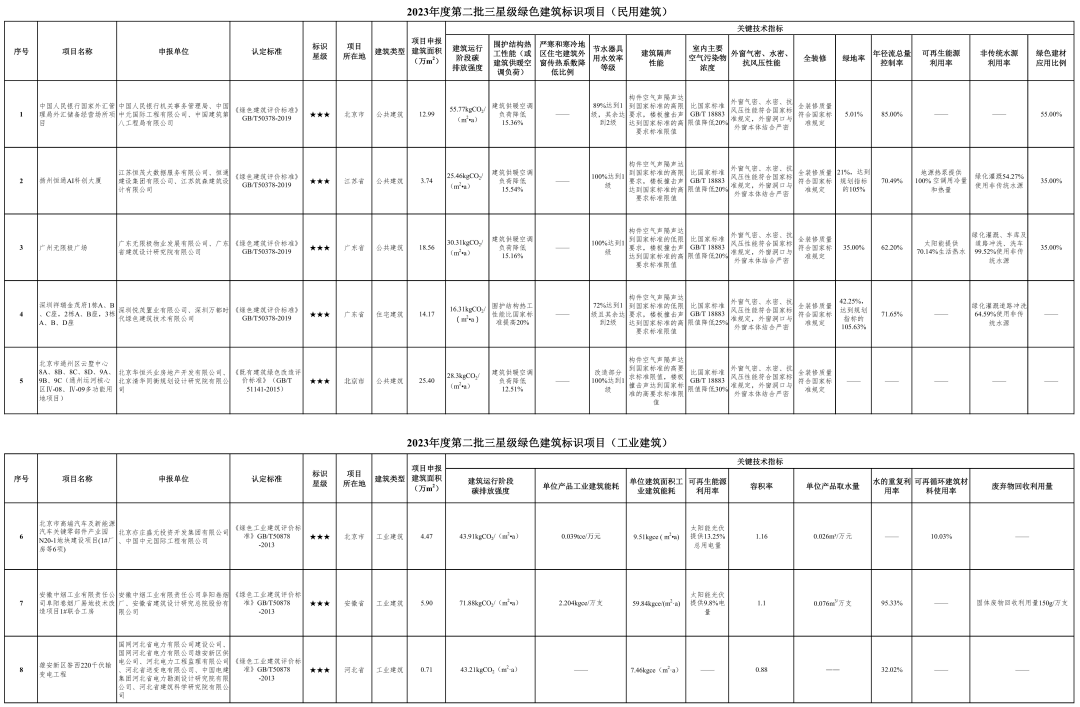 U8.COM·(中国区)有限公司官网-日前,住房城乡建设部办公厅印发公告,对2023年度第二批三星级绿色建筑标识项目入选名单进行公示,共有8个项目入选,其中,中国人民银行国家外汇管理局外汇储备经营场所项目等5个项目入选民用建筑类三星级绿色建筑标识项目,北京市高端汽车及新能源汽车关键零部件产业园N20–1地块建设项目(1#厂房等6项)等3个项目入选工业建筑类三星级绿色建筑标识项目。公示时间截止到2023年12月13日。